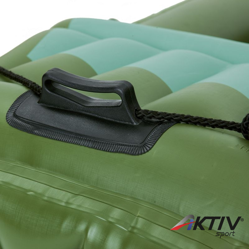 Beépített vontatókötéllel, erős fogantyúval és evezőtartóval.