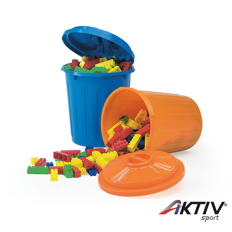 A csomag 1 db 22 literes kukát és 300 db különböző színű építőelemet tartalmaz, melyek egymásba illeszthetőek.