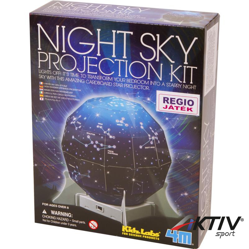 A 4M éjszakai égbolt kivetítő készlet a kezdő csillagászoknak elengedhetetlen, hogy megismerjék a Naprendszer bolygóit, a csillagokat, amik Földünket körülveszik. A két égbolt lapot össze kell hajtanod félgömb alakká, ragaszd őket össze az illesztési pontokon, végül rakd össze a játék alapját, és tedd rá az égbolt-gömböt! A játékalap világít, így vetíti ki a szobád plafonjára és falaira az égbolt mását!