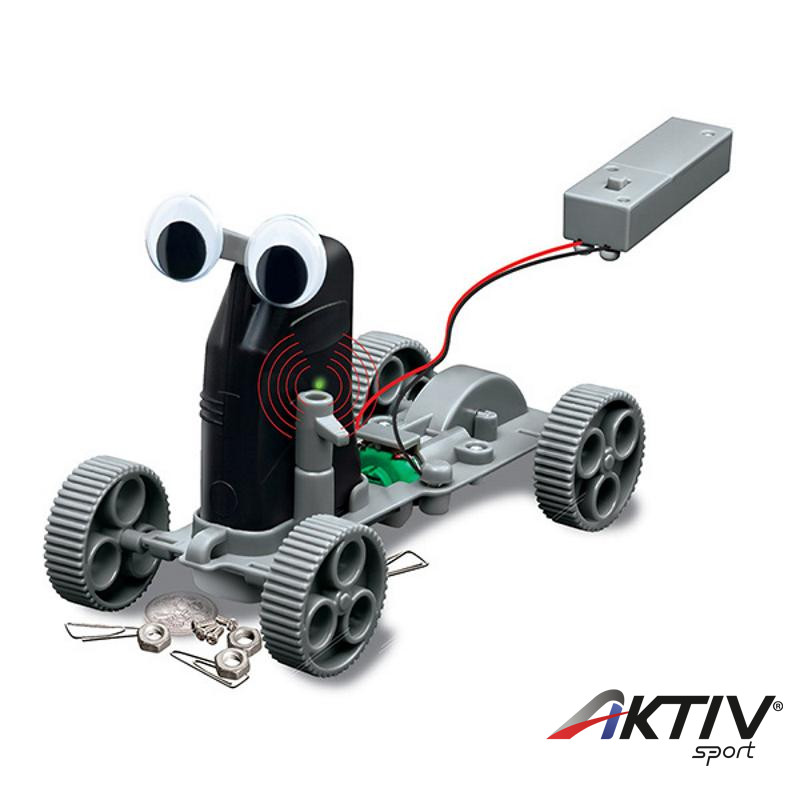 A 4M fémkereső robot készlet alkotóelemeiből egy különleges, szemekkel felszerelt fémkereső robotot tudsz összerakni. A robot vezetékes távirányítós megoldású, előre és hátra is tud haladni, és sípol, amikor fémtárgyat talál maga előtt. A fémkeresőt le tudod venni a 4M fémkereső robotról, és meg tudod vele keresni a befalazott elektromos vezetékeket, vízcsöveket is. El se hinnéd, mennyi tárgy tartalmaz fémet!