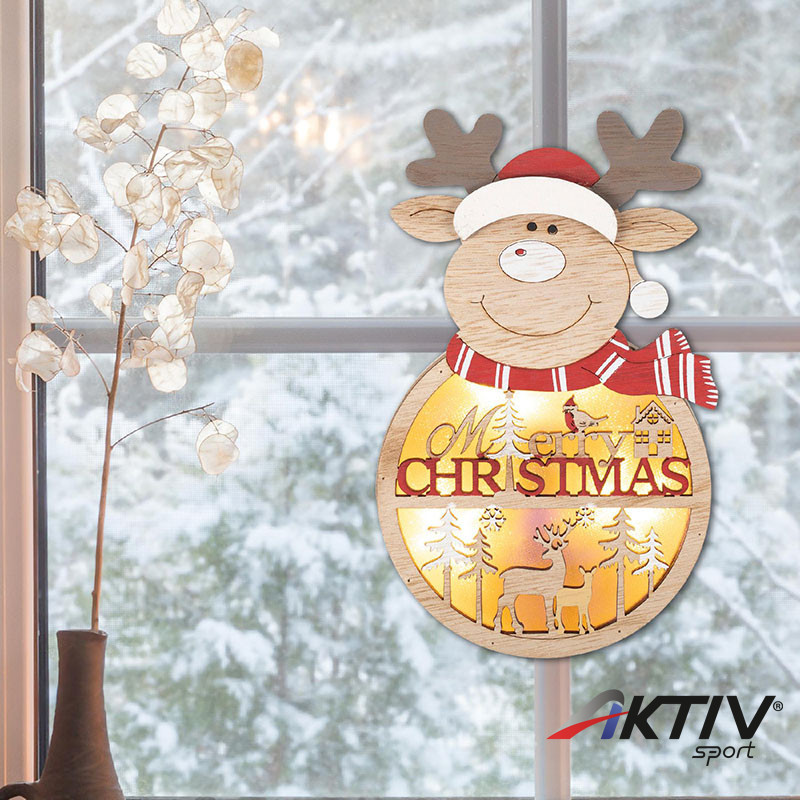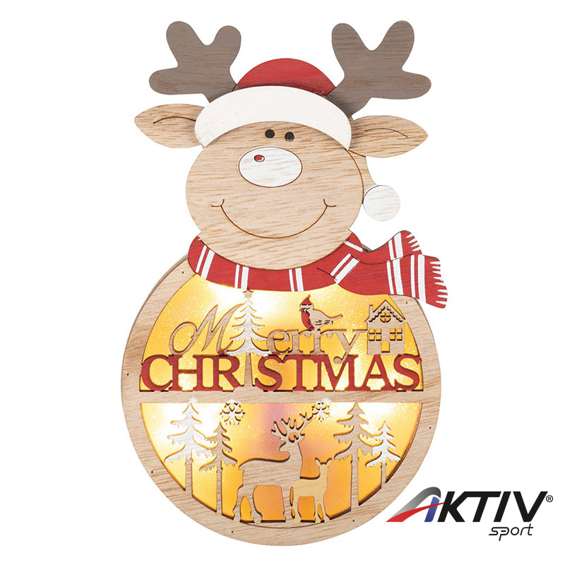 Ablak- ajtódísz rénszarvas fa LED 13x21x2,3 cm melegfehér