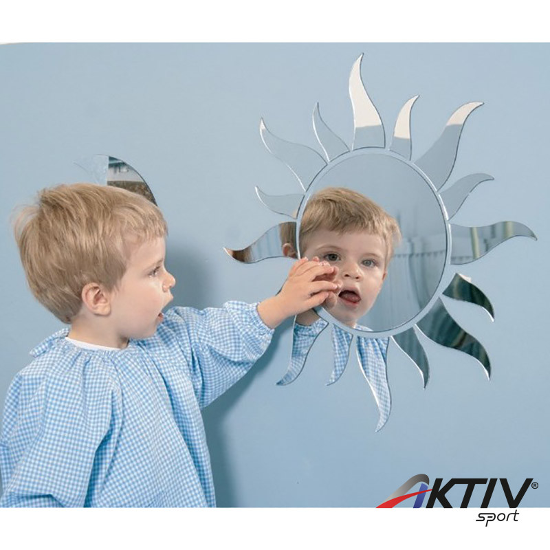 A tükörben különböző arckifejezésekkel és gesztusokkal játszhatnak ezelőtt a Nap formályú tükör előtt.