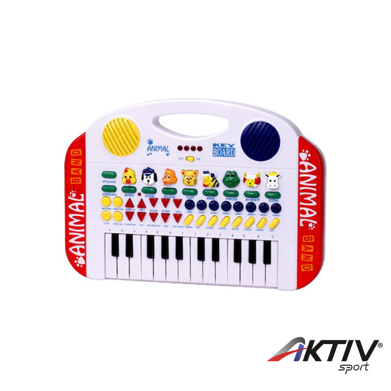 Multifunkciós elektronikus szintetizátor. 14 kedves melódiát, 8 állathangot és 4 effektet tud lejátszani. Van rajta felvétel és visszajátszás funkció is.