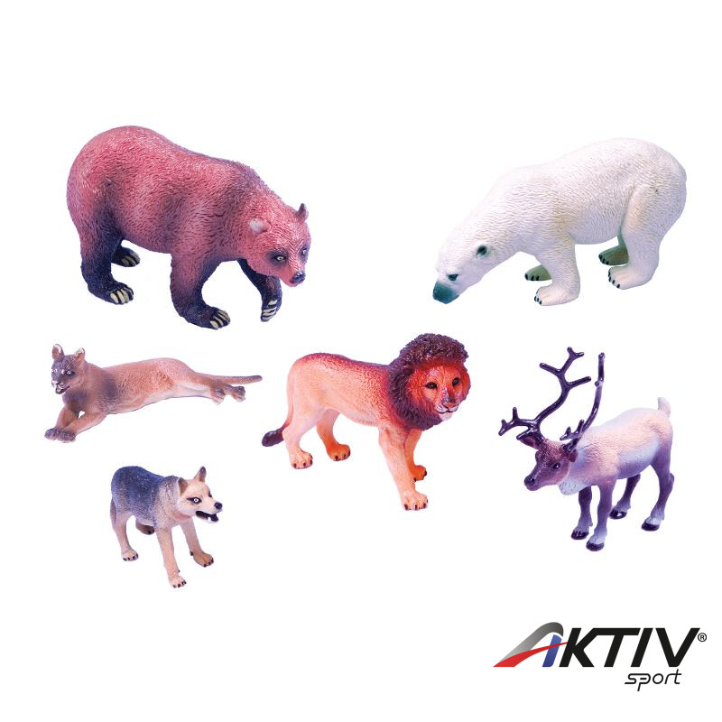 A készlet tartalma: oroszlán, puma, farkas, jegesmedve, szarvas és barnamedve.