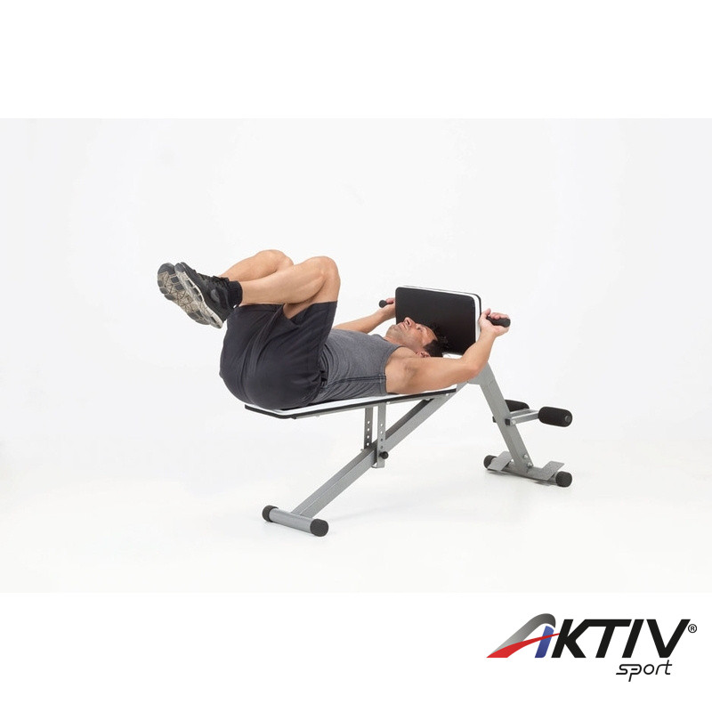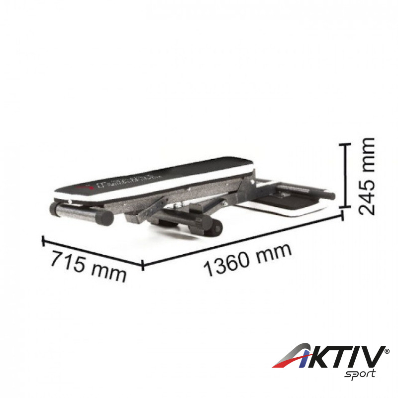- Az edzőpad sík és negatív szögben 5 fokozatban állítható. Mérete 85x25x5 cm.