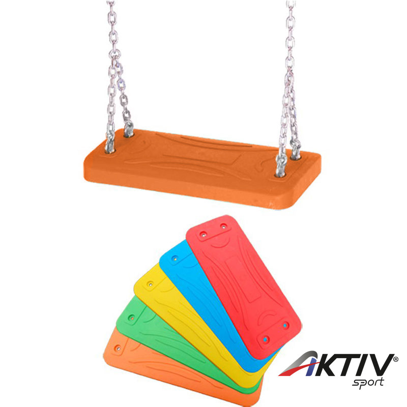Az alumínium ülőlapot egy rugalmas gumiborítás veszi körbe, így a hinta ülőfelülete meleg tapintású, és a hinta lengése közbeni sérülésveszély is minimális a többi gyermekre nézve.