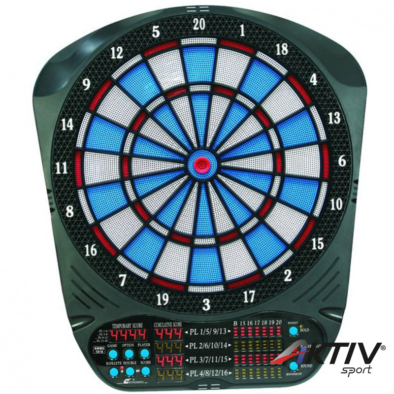 Ammo 1016 darts tábla. Kiváló minőségű darts szett, melyhez soft darts-okat ajánlunk. A dart tábla adapterrel működik, mely adaptert a csomag tartalmaz, Nagy LED kijelzővel. Alkalmas akár 16 játékos számára is, akik 31 játék és 184 játék variáció közül választhatnak.