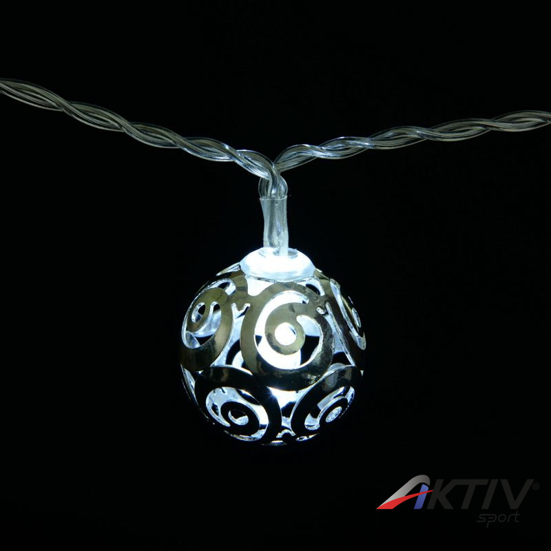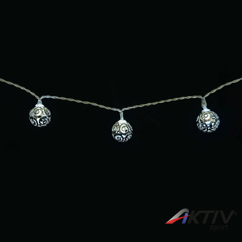 Különleges új fényfüzérünk hideg fehér fényű, apró csigavonal mintájú fémgömbökből áll. Elemről működik, ezért bárhol használhatjuk dekorációként. Egyedi mintázata miatt nem csak karácsonyi dekorációként működik, hanem egész évben dísze lehet közösségi tereknek, szalonoknak, tematikus kávézóknak.