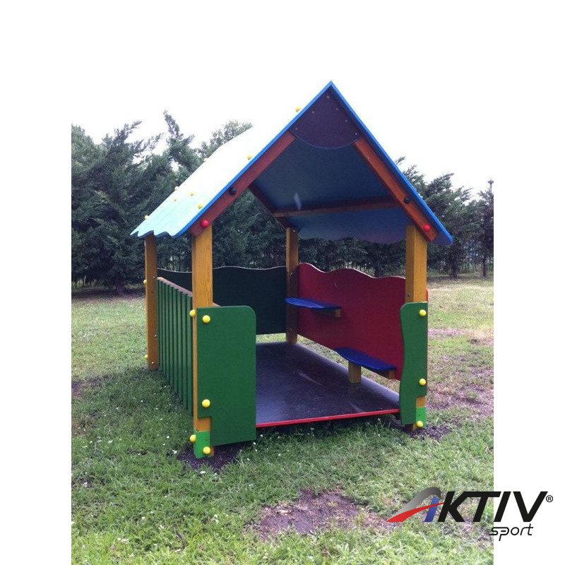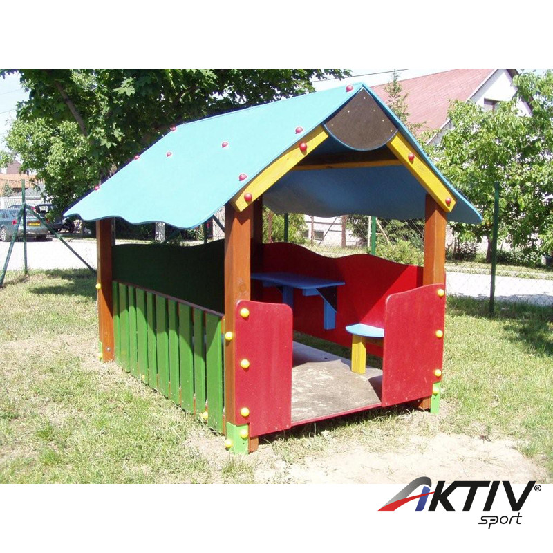 Hagyományos babaház, színes, hullámos vonalvezetéssel. A babaházon belül ülőkék, tálalópult található. Óvodákba és bölcsődékbe ajánljuk.