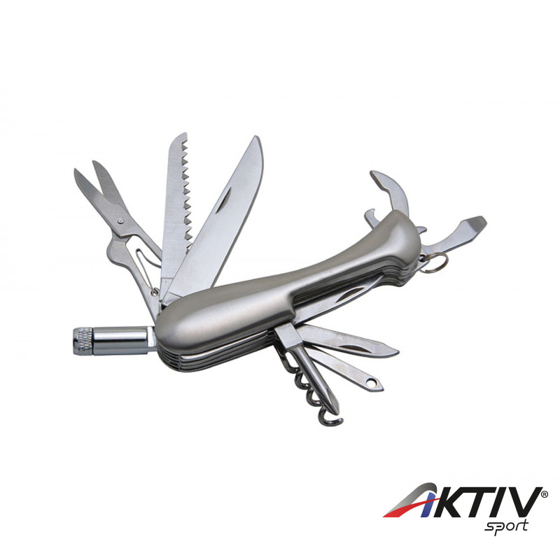 A penge 11 pengén kívüli funkciója: dugóhúzó, manikűrös, palacknyitó, laposfejű csavarhúzó, konzervnyitó, olló, philips csavarhúzó, lyukasztó, menetes lyuk, fűrész, LED lámpa (elemmel együtt).