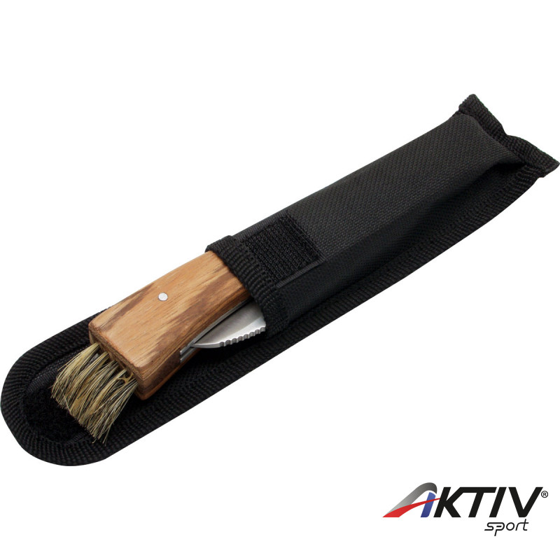 A kifejezetten gombászoknak ajánlott modell pengéje 420 rozsdamentes acélból készül. A vaddisznószőr kefe és a penge külső peremén található fogazott kialakítás a gomba tisztításában segít.