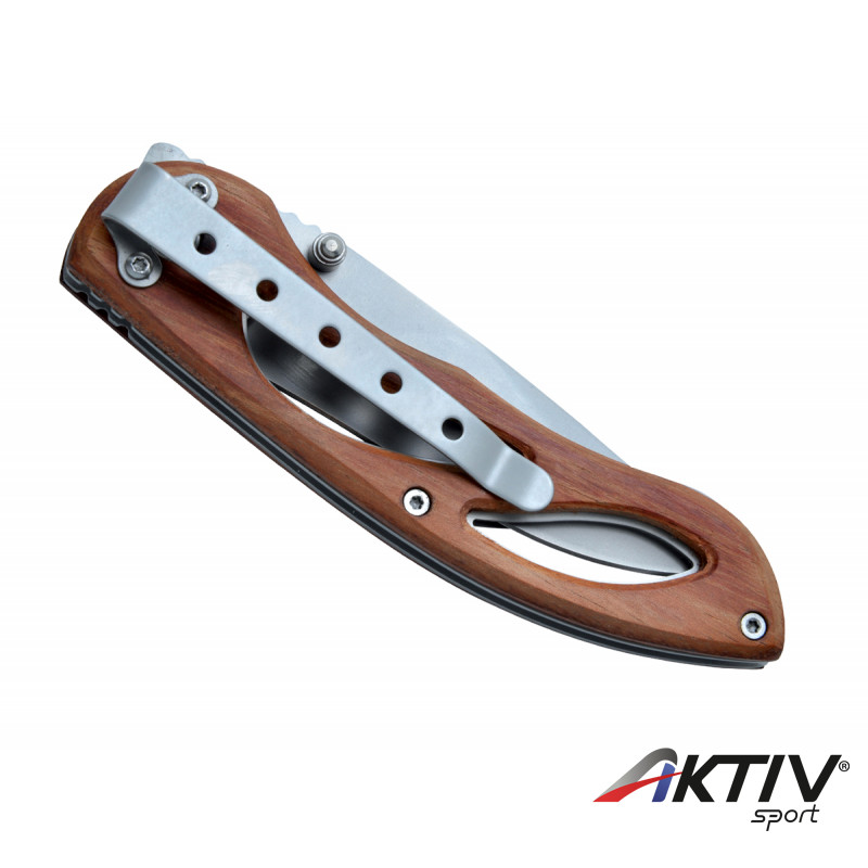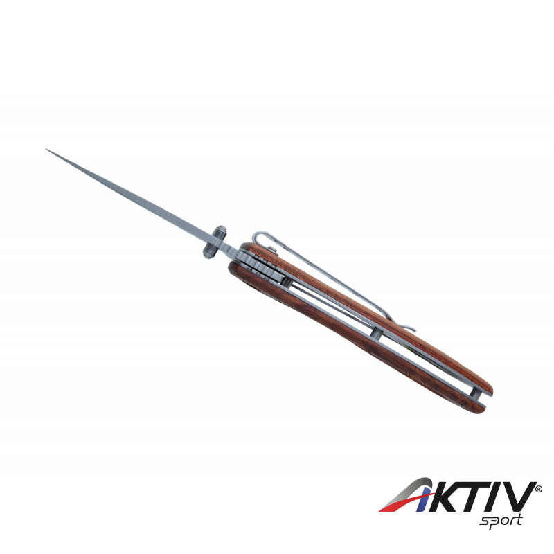 Matt, rozsdamentes acél pengéjét felső záras rögzítéssel látták el, amely megakadályozza a kés becsukódását használat közben.