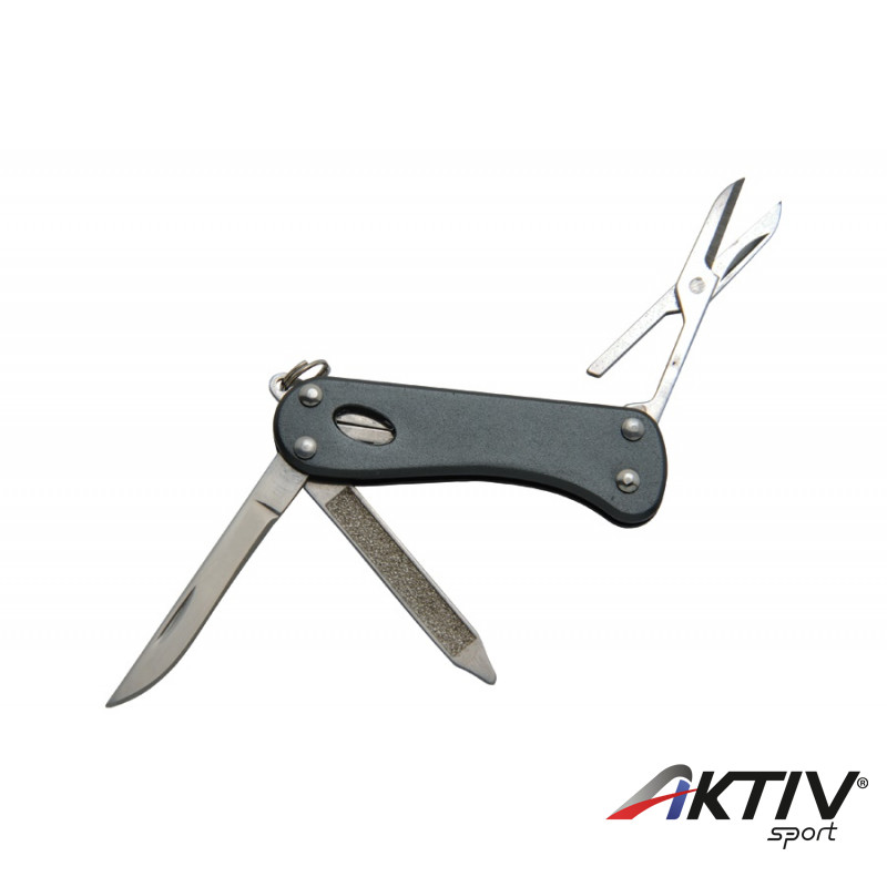 Kompakt, könnyű, hogy mindennap veled lehessen. 5 funkciós kisbicska: kés, olló, körömreszelő, köröm tisztító, kulcskarika, 2,5 mm-es lapos fejű csavarhúzó.