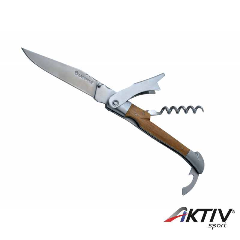 Minőségi, rozsdamentes acél pengéjű pincér bicska, kézzel csiszolt zebrafa markolattal.