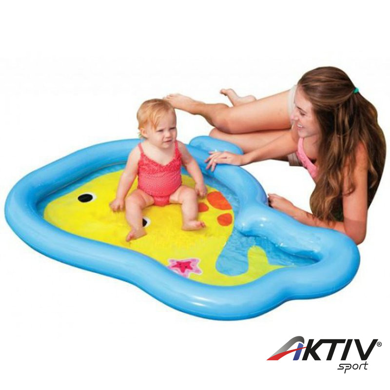 Vidám, színes felfújható Intex bálna bébi medence az első nyári pancsolásokhoz. A puha falú bébi medencét 1 éves kortól ajánljuk! Könnyen és gyorsan felfújható.