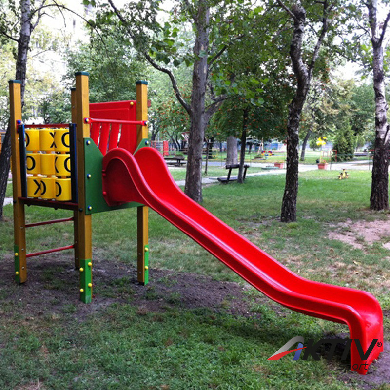 - Anyag: Bélmentes, telített borovi, színterezett fém tartólábak, létrafokok, csúszásmentesített rétegelt lemez, üvegszál erősítésű beülőkaros csúszda