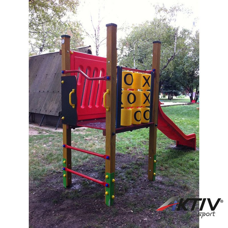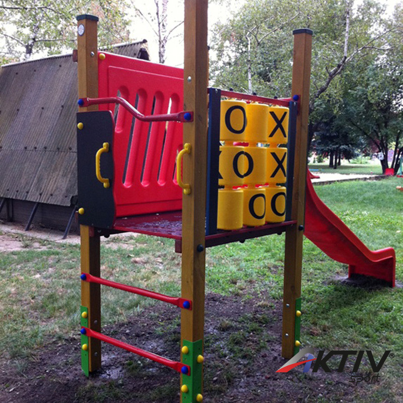 A Simple bástya kedvelt játszótéri eszköz. A csúszda mellett a gyermekek által kedvelt és látványos logikai készségfejlesztő is megtalálható. Az OXO amőbajáték lényege, hogy a gyerekek addig forgassák a hengereket, míg átlósan, függőlegesen, vagy vízszintesen nem sikerül három egyforma mintát kirakniuk. A játszóeszköz esésmagassága 1 m, így külön ütéscsillapító felület kialakítása nem szükséges, a gondozott gyep megfelelő az esési téren belül.