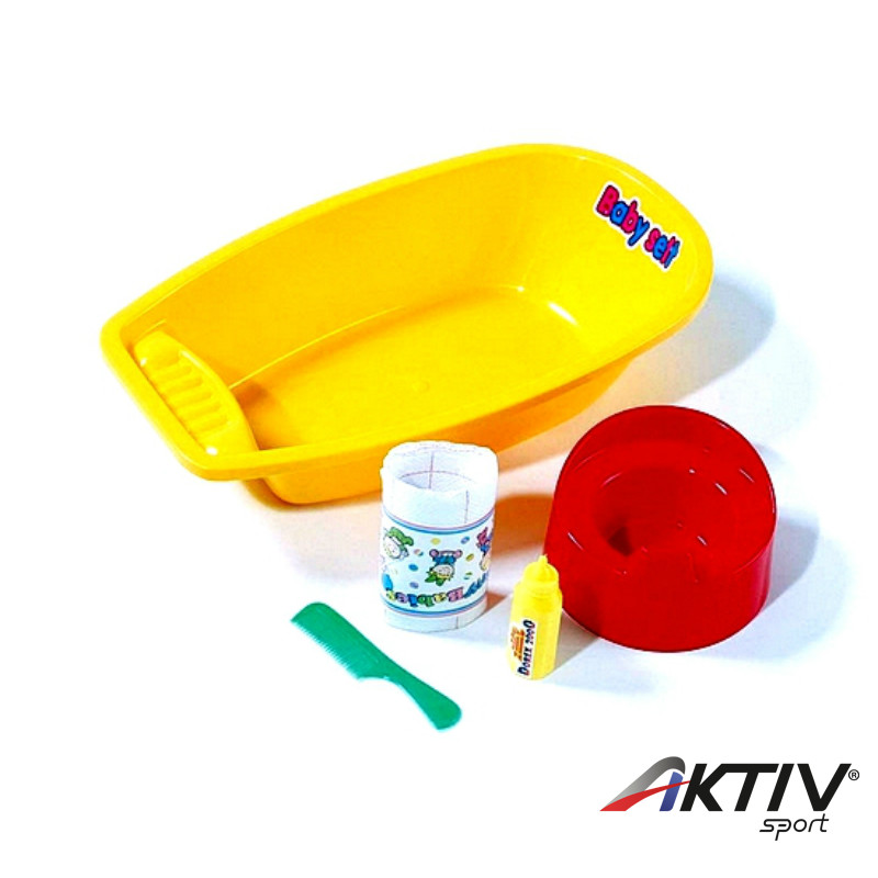 Tartalma: 1 db műanyag kád, 1 db bili, 1 db fésű, 1 db cumisüveg. A kád lila és pink színekben rendelhető! A többi kiegészítő véletlenszerűen változó színekben.
