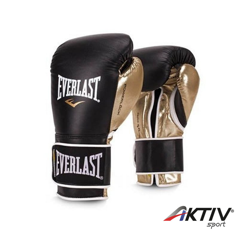 Bokszkesztyű Powerlock Pro Everlast műbőr tépőzáras fekete-arany 10 oz