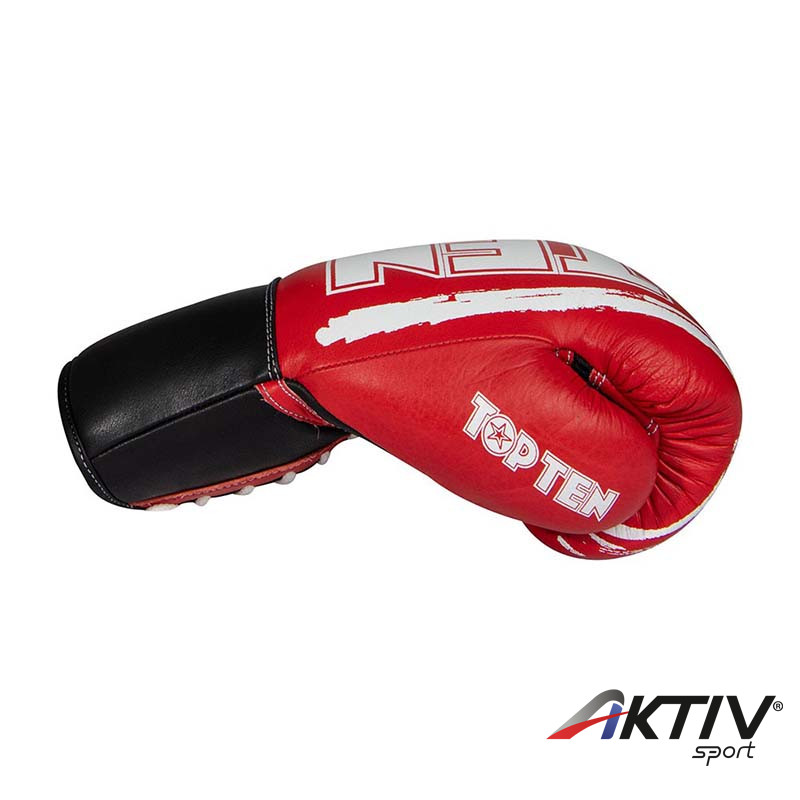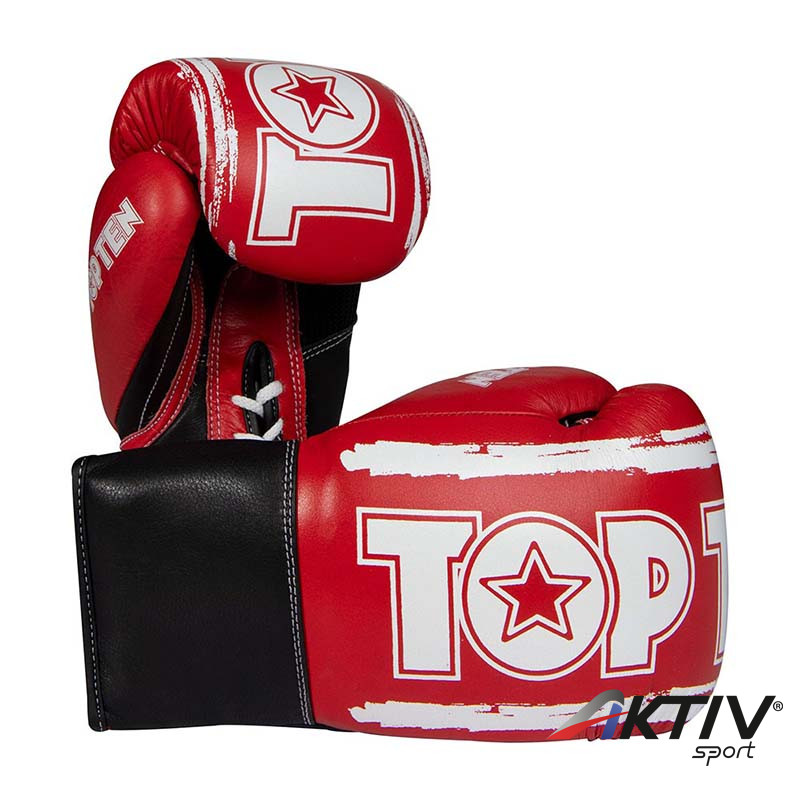 Bokszkesztyű Top Ten Round Up bőr fűzős piros-fehér 10 oz