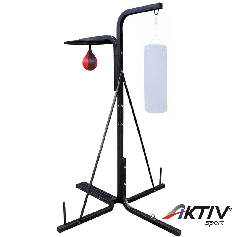 Stabil box állvány boxkörtével, ütközővel és boxzsákkal. Alkalmas nem csak az ütések, hanem a küzdős sportok rúgásainak és forgásainak otthoni edzésére is.
