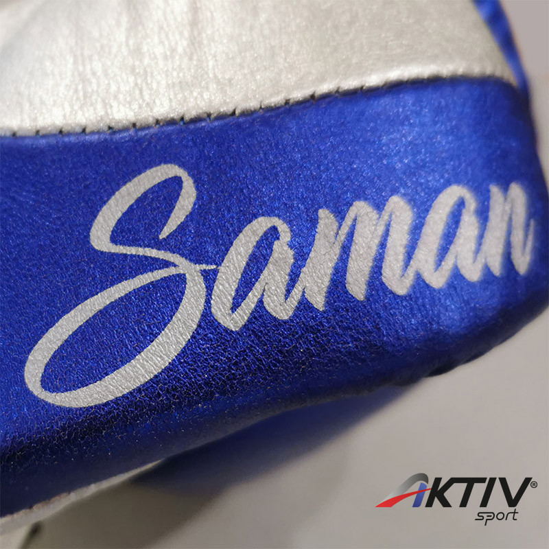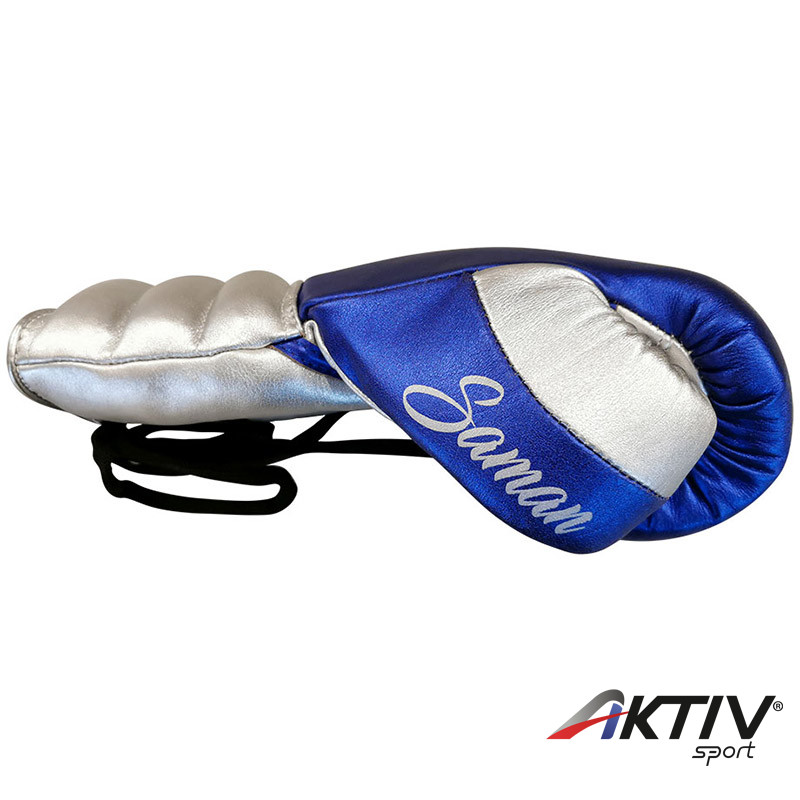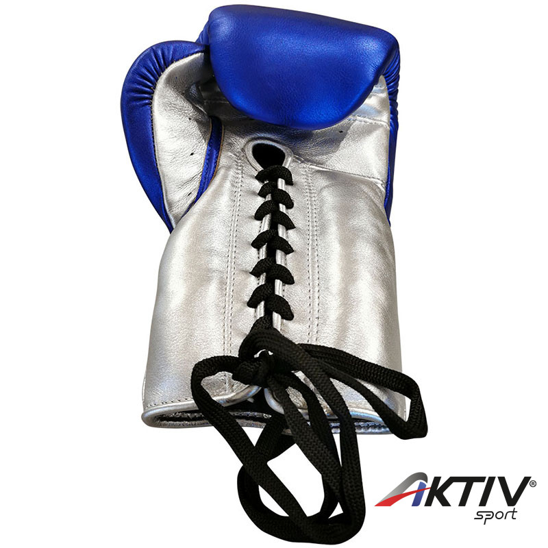 Boxkesztyű Saman Event Gloves bőr fűzős kék-ezüst 8 oz