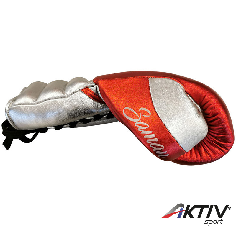Boxkesztyű Saman Event Gloves bőr fűzős meggy-ezüst 8 oz