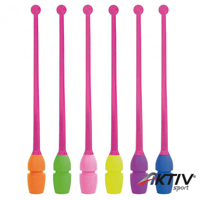 Ritmikus gimnasztikához használt buzogány rózsaszín-lila színben.