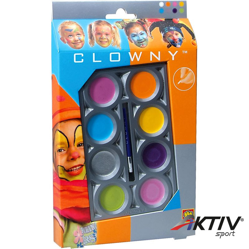 8 különböző színű korong alakú arcfestéket rejt a csomag, mely nagyszerű szórakozást kínál a gyerekeknek és a felnőtteknek egyaránt. Ideális zsúrokra, szülinapra ahol a gyerekek kifesthetik egymást. A Clowny Aqua arcfestéket Hollandiában tervezték és gyártják. Vízalapú, bőrbarát termék, amelyet könnyű lemosni. Ez az arcfestékek teljesen biztonságos a gyermekeknek és a környezet számára.