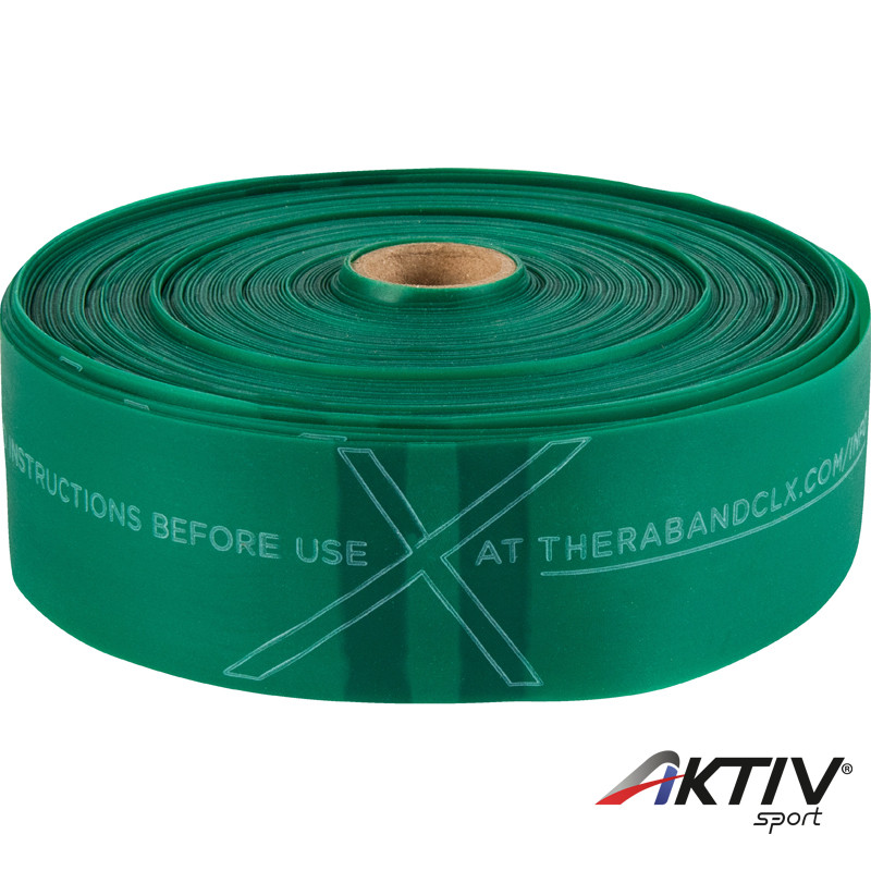 A Thera-Band CLX szalagot egy 50 cm hosszúságú zöld CLX-et 100 cm-re nyújtunk, a nyújtás százalékos aránya 100% és az ehhez szükséges erő 2,1 kg-nak felel meg. A 200%-os nyújtáshoz szükséges erő 3,0 kg-nak felel meg.