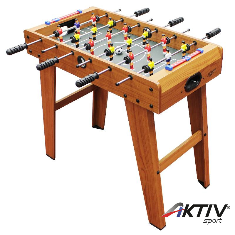 Nagyszerû fából készült csocsóasztal vonzó design-nal.