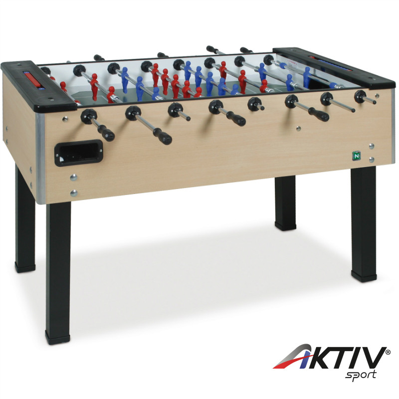 A bükkfa mintázatú csocsóasztal karcolásmentes felülettel rendelkezik. Az asztal oldalának vastagsága 25 mm.