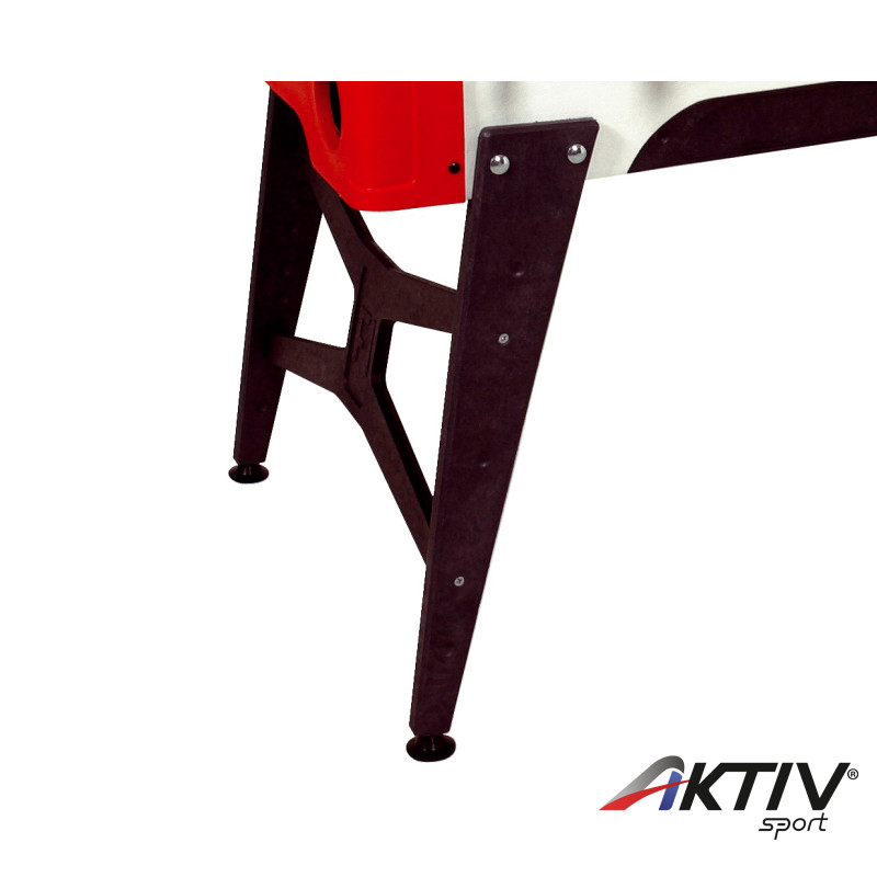A játéktér homokfújt üveglappal burkolt, melyen a labda jobb tulajdonságokkal mozog mint a laminált felületű játéktereken.