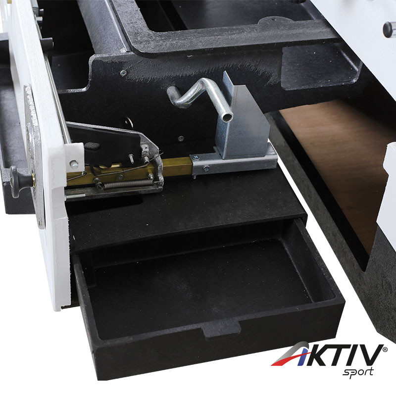 Szerkezet: hőre lágyuló gyantával erősített szálas anyagból, acél csavarozással összeállítva. Oldalfal vastagsága: 19 mm. A labdavisszatérítő rendszer egyenként cserélhető elemekből áll.