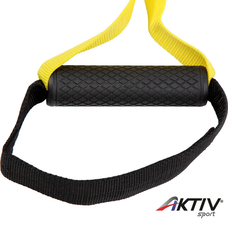 Az Aktivsport edzőheveder erős szalagokból áll, melyeket egyszerűen rögzíthetünk szinte bárhova! (ajtóba, kampóba a falra, oszlophoz, bordásfalra, fán stb.) Könnyű és kis helyigényű: hordtáskájában bárhová magával viheti.