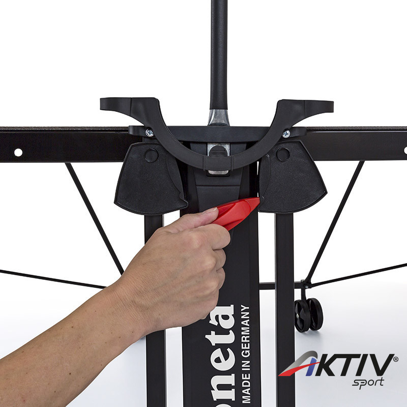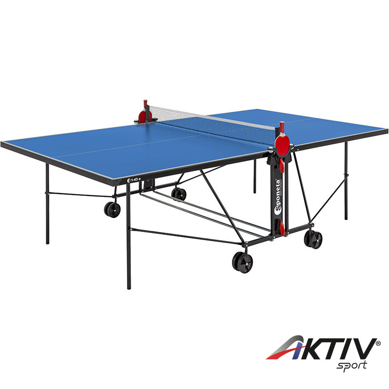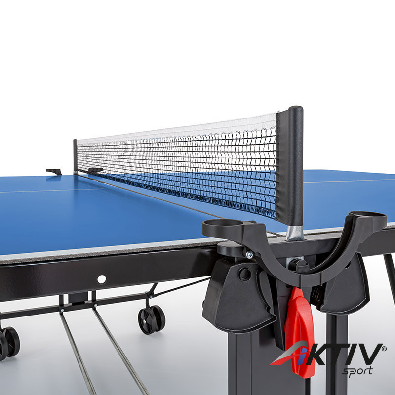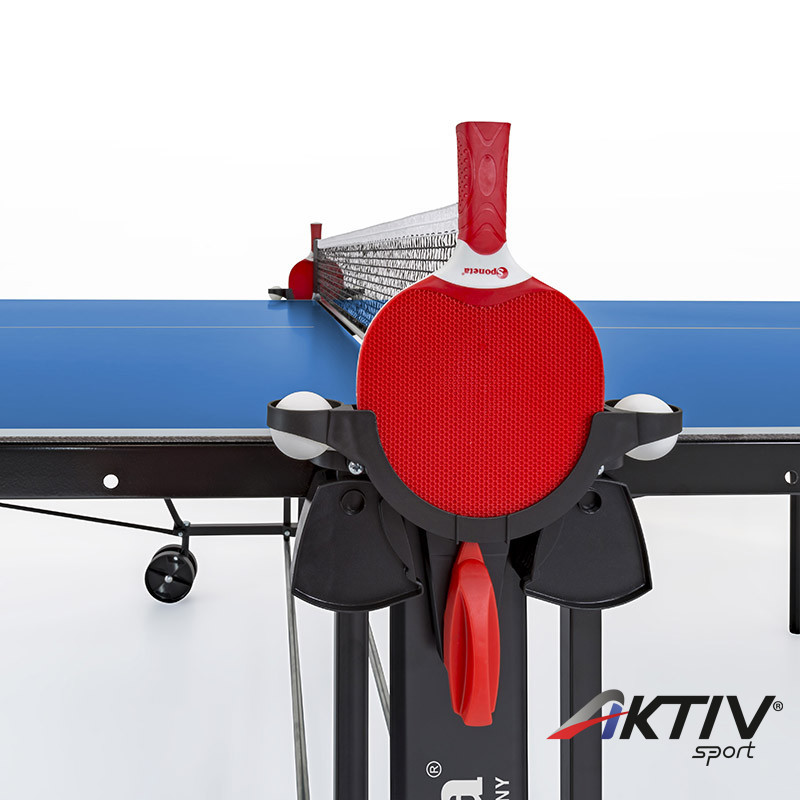 A pingpongasztal 1 db ütő- és labdatartót és 1 db Sponeta Basic pingpongháló szettett is tartalmaz!