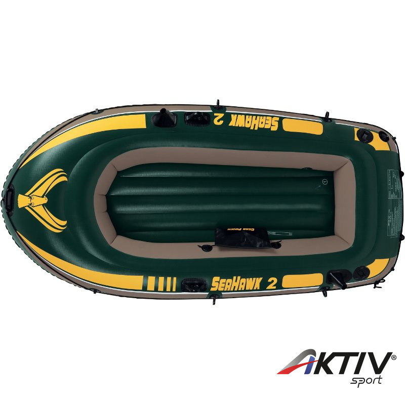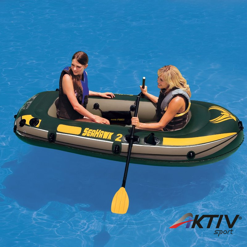 Kétszemélyes Intex Seahawk csónak három légkamrás, úgynevezett Boston szelepekkel, felfújható aljrésszel, 2 db horgászbot tartóval. Extra erős anyagból készült, különleges kétrétegű poliészter hálót tartalmaz a nagyobb szilárdság érdekében. Ezzel nagyobb ellenállást tud biztosítani a só, motorolaj, benzin és egyéb anyagot környezeti károsító hatásokkal (hőmérséklet ingadozás, UV sugárzás stb.) szemben. Terhelhetősége 200 kg. Mérete: 236x114x41 cm.