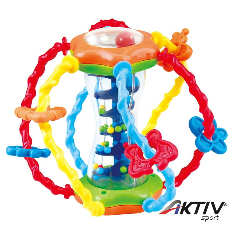 Élénk színei és zörgő-mozgó alkatrészei, valamint könnyen megmarkolható kialakításával mind arra ösztönzi a babákat, hogy folyamatosan a kezükben legyen, és hosszú ideig játszanak vele.