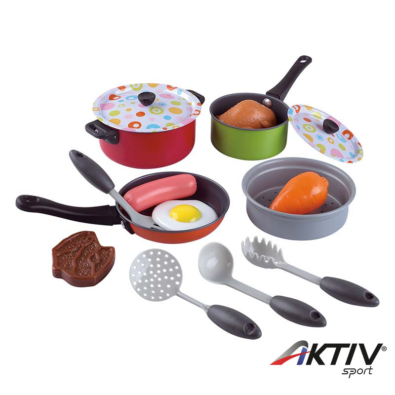 Ez a nagyszerű játékszett a gyerekek játék konyhájának legnépszerűbb készlete lehet, hiszen a fém edénykészlet műanyag kiegészítőkkel minden megjelenésében hihetetlenül hasonlít arra, melyet a felnőttek is nap, mint nap használnak a főzés során.