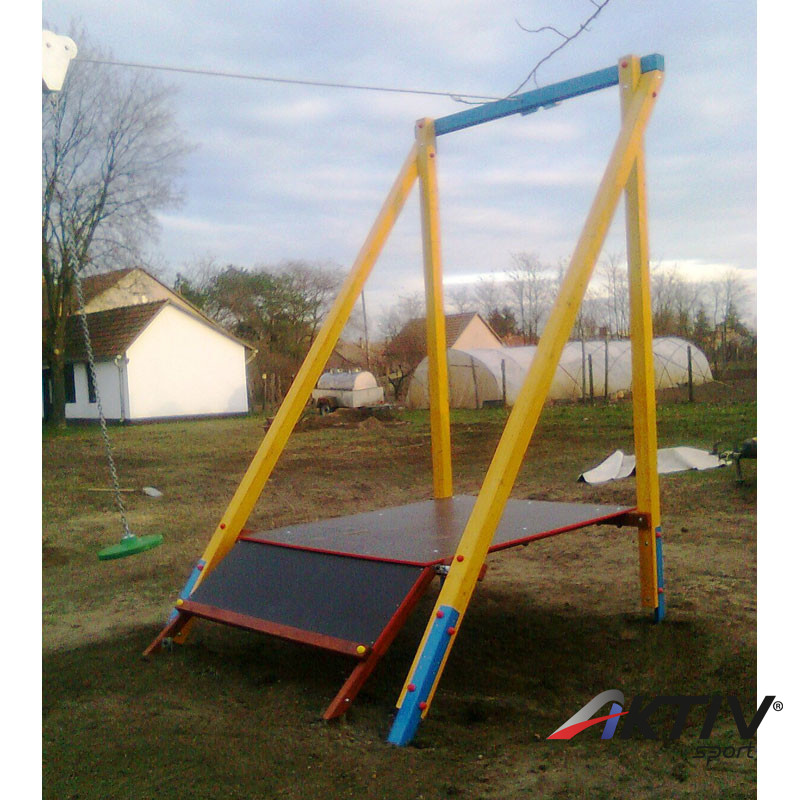 - Telepítés: A nyolc darab tartóoszlop rögzítése betonozással történik úgy, hogy a betontuskók elkészítésénél figyeljünk rá, hogy a talajszinttől legalább 20 cm-rel lejjebb fejezzük be a betonozást, és a beton alapos tömörítése után alakítsuk ki az ütéscsillapító felületet, mely esetében elfogadott a nyírott, gondozott gyep is az esési téren belül. - Esési magasság: 40-100 cm