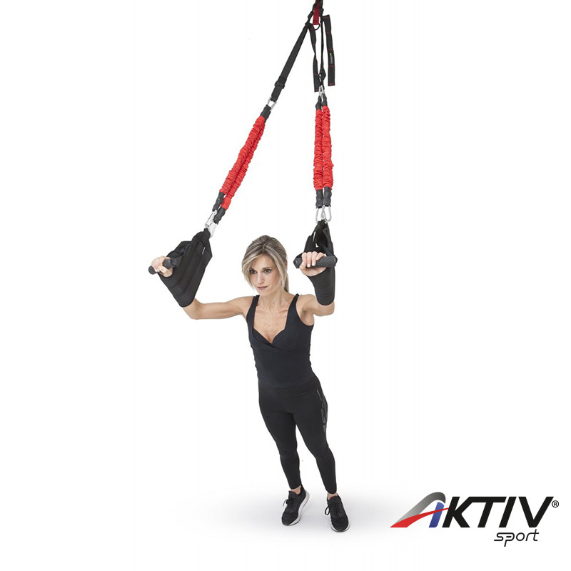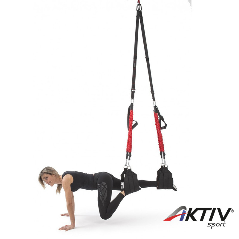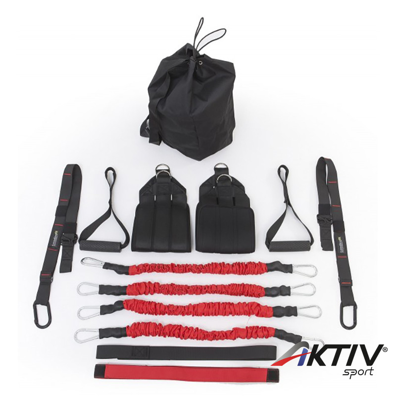 A csomag tartalmaz 4 elasztikus elemet, rövid és hosszú elemekkel, kéz- és lábszorítókat, emellett 2 fogantyút. Az alacsonyabb szintű hevederek külön használhatók. Ajtó rögzítésre szükséges elemek is megtalálhatók a csomagban. Fogantyúi párnázottak, mely védi az érintkezési felületet. Az edzőheveder könnyed, rugalmas lebegő mozgást tesz lehetővé.