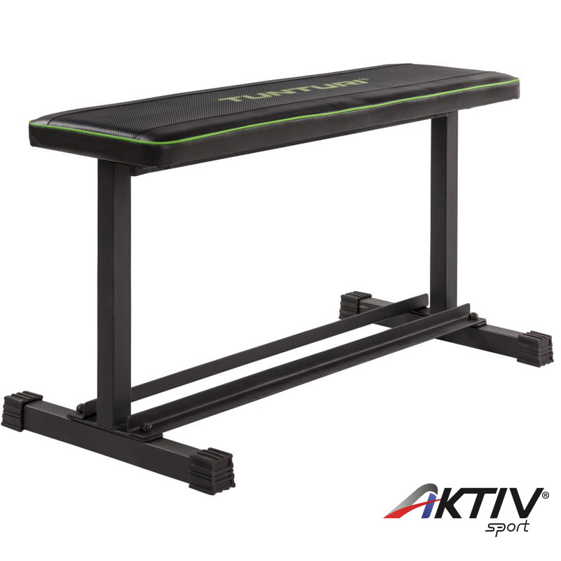 A pad fekvőrésze alatt elhelyezett kézi súlyzó tartó praktikus megoldás, a lábakon lévő gumitalpak pedig védik a padlózatot és csúszásmentes használatot biztosítanak.