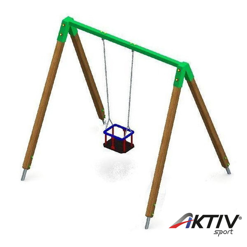 A legtöbb játszótér elengedhetetlen része a hinta. Köztéri játszóterekre, bölcsődékbe, kiscsoportos óvodásoknak kínáljuk ezt az egyállású hintát 1 db biztonsági gyerekhintával szerelve.