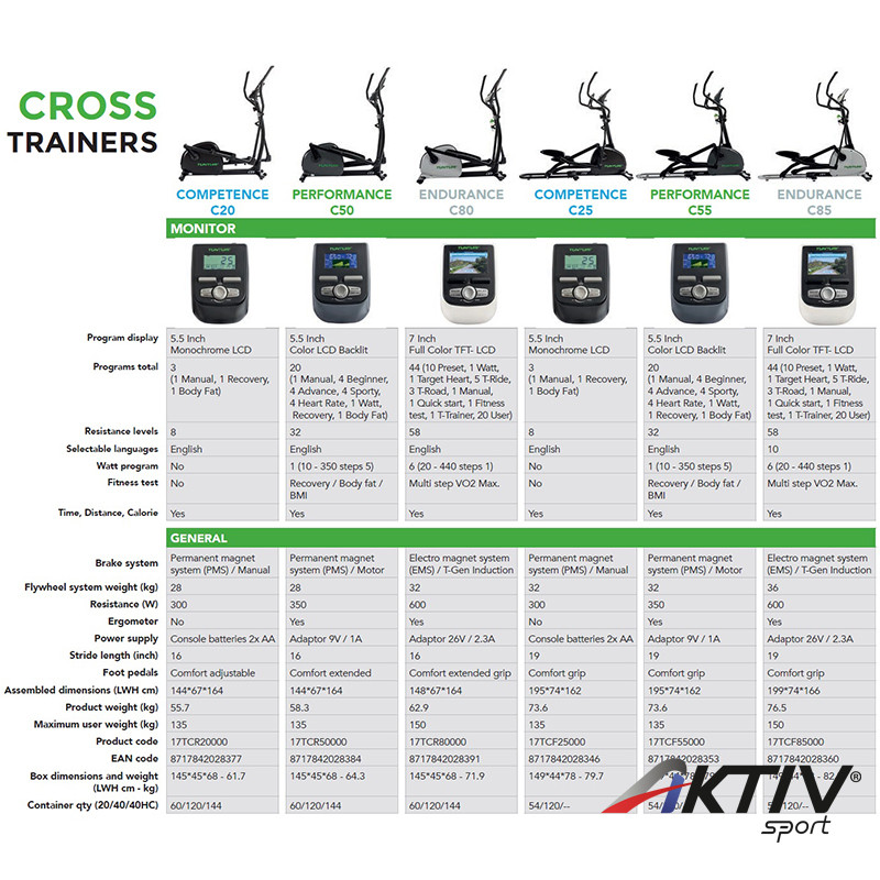 Megbízható, pontos és egyszerűen szabályozható mágneses fékrendszer, tekintélyt parancsoló lendítő tömeg és tökéletes ergonómia jellemzi a Tunturi Competence C20 R elliptikus gépet.