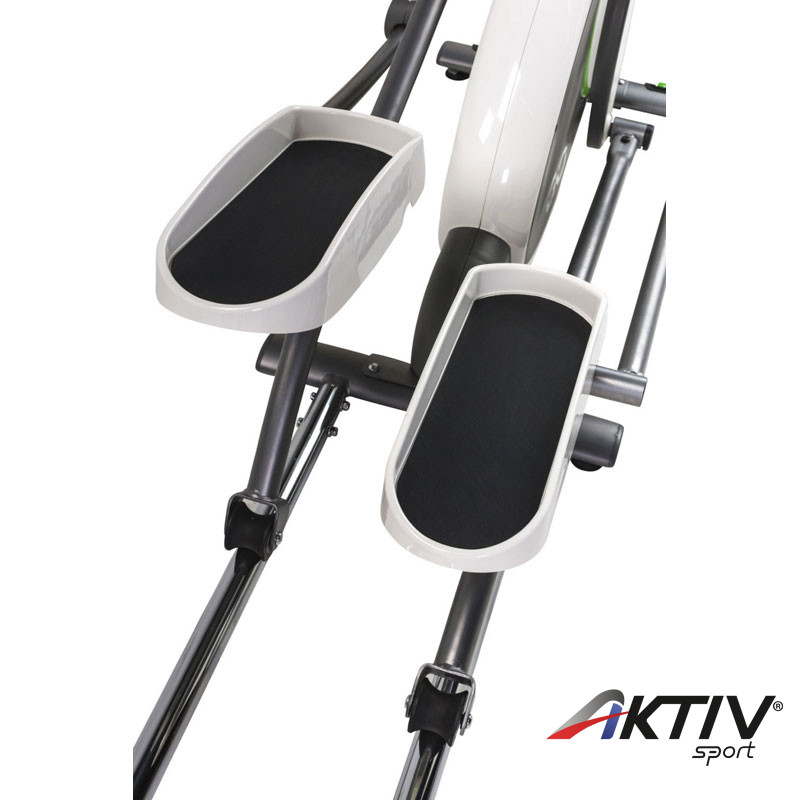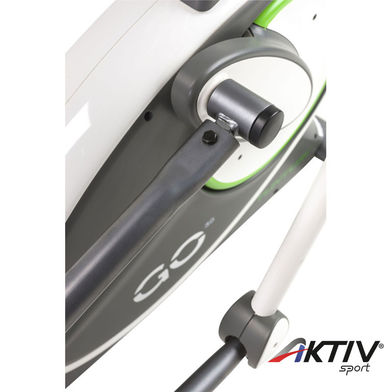 A Tunturi GO Cross F 30 elliptikus gép minőségi, könnyen kezelhető fronthajtásos elliptika. Lépéshosszát nagy, ergonomikus mozgáspálya biztosítja. 8 fokozatba állítható ellenállása van. Maximális terhelhetősége 135 kg. Nagy monochrome LCD kijelzőjéről könnyedén leolvashatóak a legfontosabb adatok, mint idő, sebesség, távolság, kalória és fordulatszám. 6 kg-os lendkereke, 33 kg-os lendítőtömege, szíjhajtása biztosítja az egyenletes és csendes működést. Markolatérzékelős pulzusmérése van. Kompatibilis a mellkasi övekkel, mely segítségével EKG pontosságú pulzusmérést érhetünk el (5,4KHZ). A kényelmes és egyszerű szállítást a szállítógörgők teszik lehetővé. Állítható, csúszásmentes lábtartói felelnek a biztonságos edzésért.