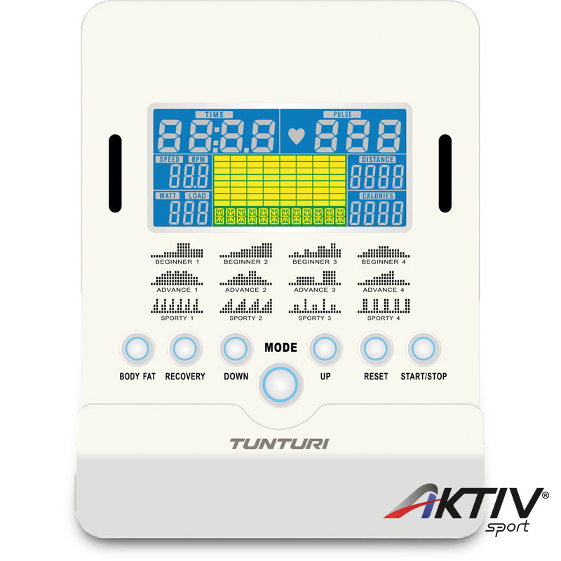 - Kijelzők: színes 5,5 inch LCD: idő, távolság, elégetett kalória, fordulatszám, pulzus