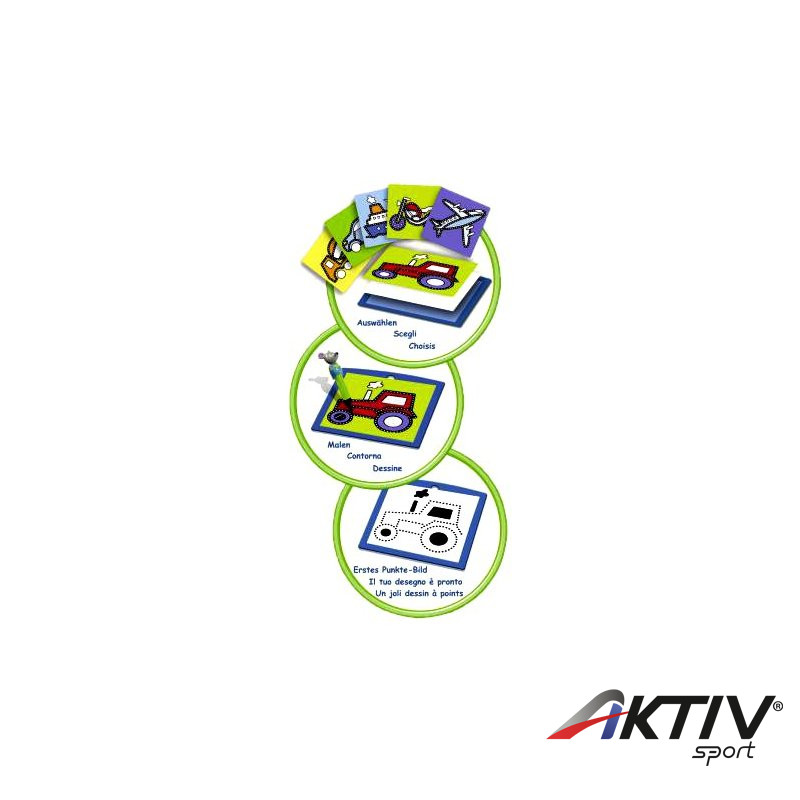A kicsik a sablon segítségével könnyedén bepontozhatják a jármûvek képeit, majd összekötve a pontokat, megkapják a kép körvonalát és kedvük szerint színezhetik ki azt.