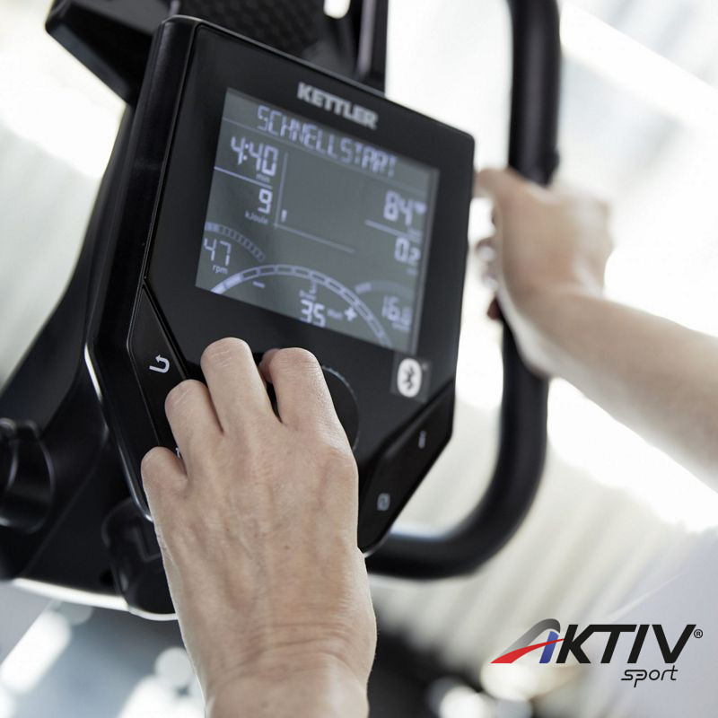 A KETTLER Tour 300 szobakerékpár az egész család számára kiváló edzőeszköz. Megfelelő választás kezdő és haladó sportolók számára. 15 ellenállási szintje közül beállíthatja az edzéséhez megvelelő nehézségi fokozatot manuális programban, vagy kiválaszthat egyet a beépített programok közül. 250 Watt pedál ellenállást biztosít. 10 beépített edzésprogram közül választhat, köztük egy pulzusvezérelt program segítségével adott pulzusszámon edzhet. Mágneses fékrendszerének és 8 kg-os lendítő kerekének köszönhetően egyenletes tekerést biztosít. Kíméli az ízületeket. A kijelző feletti beépített tartó lehetővé teszi, hogy edzés során használja okostelefonját vagy táblagépét. Bluetooth-on keresztül összehangolhatja szobakerékpárját a Kinomaps és KETTMaps alkalmazással, mellyel még valósághűbb otthoni edzésélményben lesz része. Pulzusát mérheti a kézipulzusmérővel vagy mellöves pulzusmérővel.