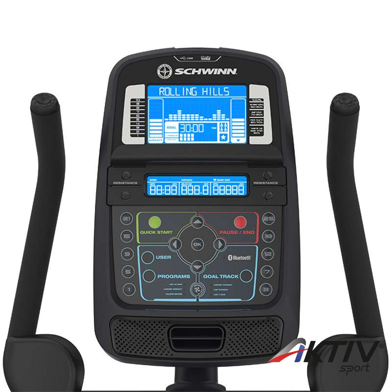 További funkciókkal felszerelt, melyek komfortosabbá teszik az edzést. 3 fokozatú hűtőventilátorral, gyorsgombokkal, kulacstartóval ellátott, a kiváló akusztikus hangrendszere motiválja az edzést. Tablet tartójának köszönhetően edzés közben akár filmet nézni vagy e-maileket olvasni is lehet. Bluetooth alapú összeköttetéssel szinkronizálhatók az adatok a különböző alkalmazásokkal, mint a Schwinn® Connect ™, a Schwinn® Trainer ™ App, a My FitnessPal és Under Armor Connected Fitness, mellyel hatékonyabbá, nyomon követhetővé tehető az edzés.