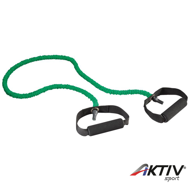 A zöld színű gumikötél a rehabilitációra, aerobic-ra ajánlott, gyengébb felnőtteknek.